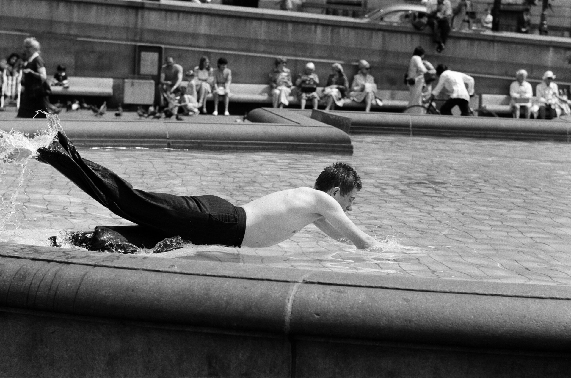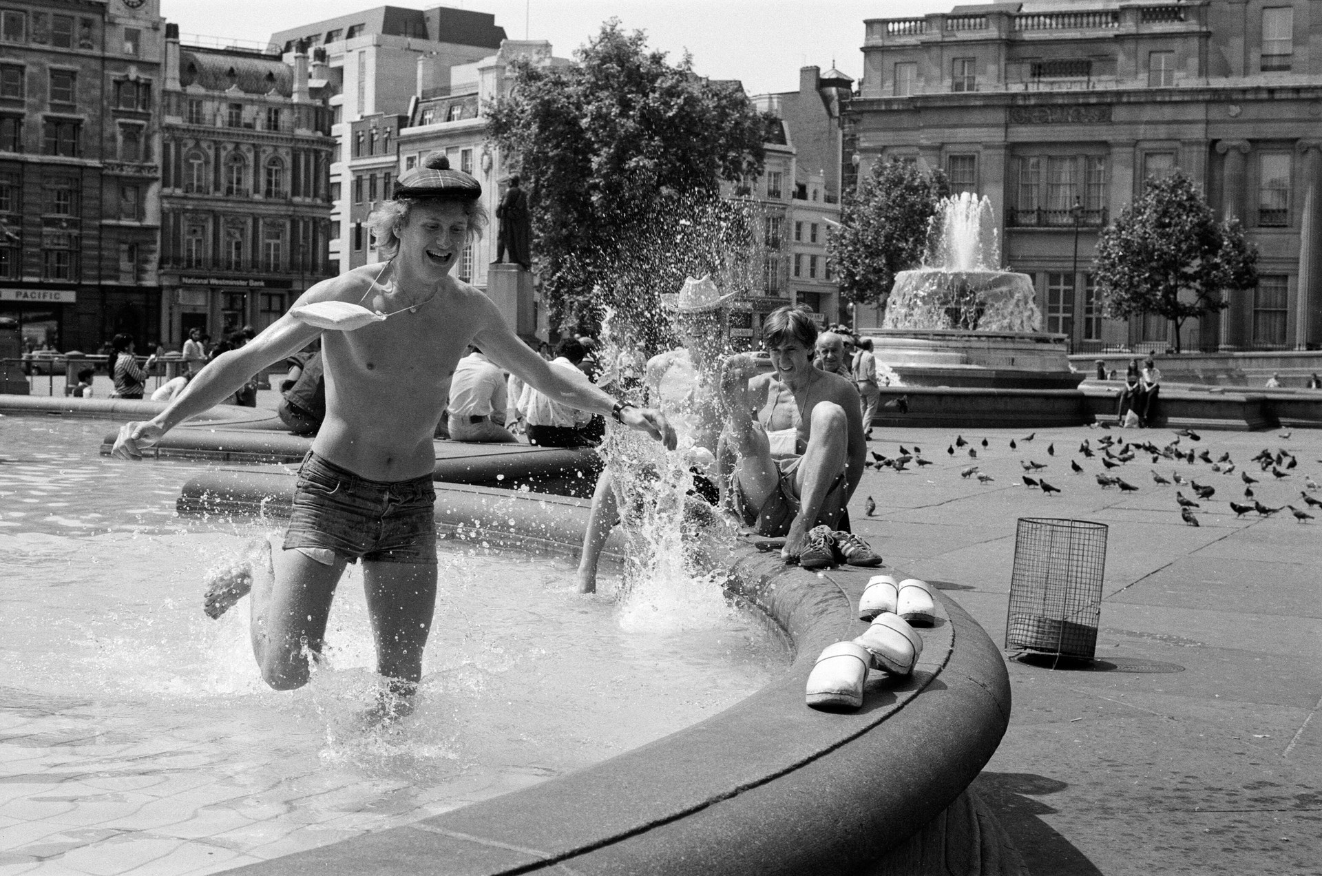 Traflagar Square fountains and Hampstead Heath ponds were filled to the brim as Londoners tried to cool off.