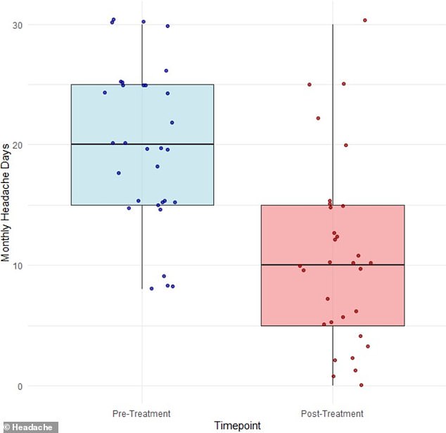 After three months, the participants' average number of migraine days dropped from 20 to 11.